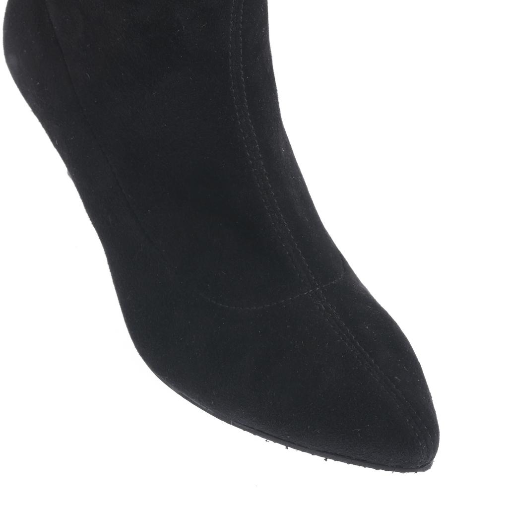 Aceste botine din piele întoarsă se remarcă prin designul minimalist și cusăturile vizibile, fiind ușor de asortat în ținute actuale. Construcția slip-on permite încălțarea rapidă, iar vârful ascuțit și tocul stiletto de înălțime medie evidențiază o linie feminină și elegantă. Finisajele atent realizate completează modelul, potrivit pentru apariții de zi sau de seară.