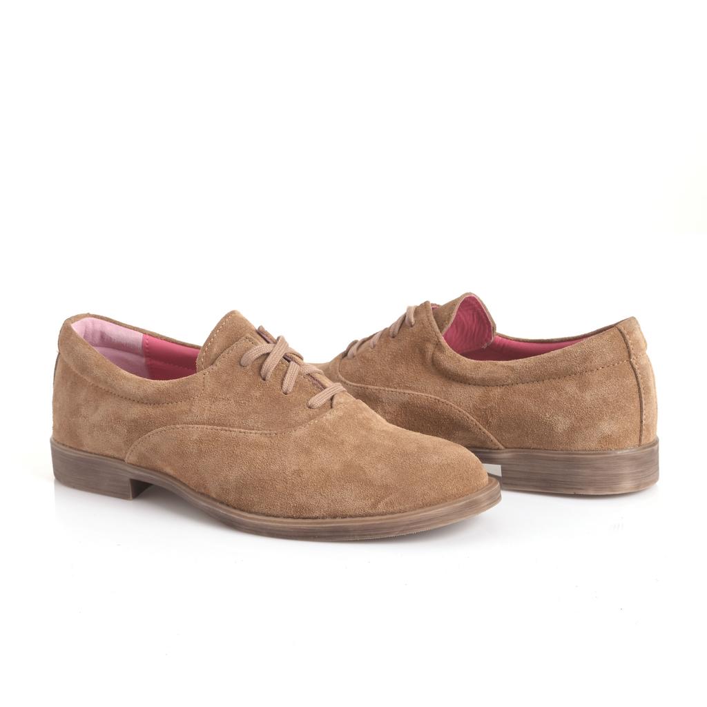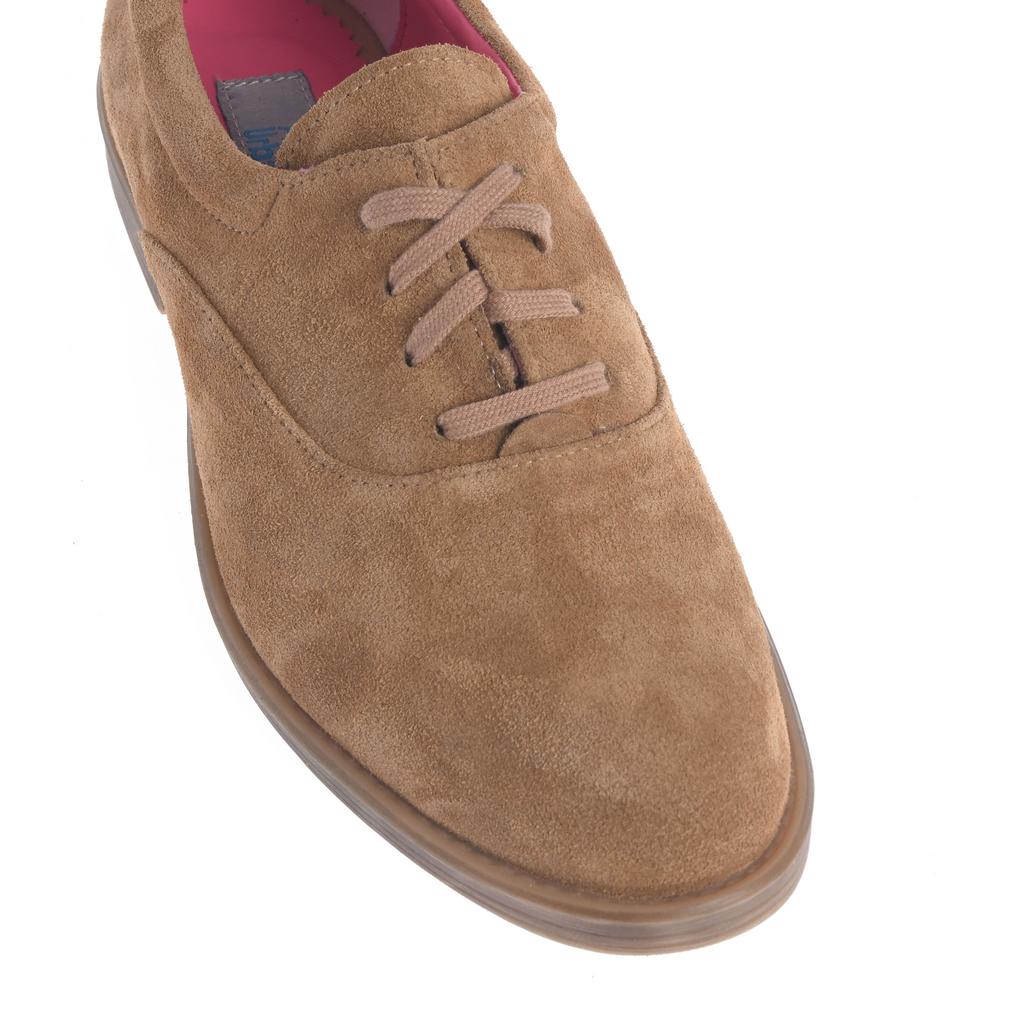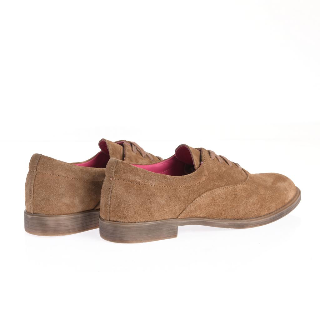 Model tip Oxford cu parte superioară din piele întoarsă, realizat într-un design minimalist. Pentru o fixare sigură, se închide cu șireturi, iar vârful rotunjit, talpa plată, cu finisaj neted, și tocul jos susțin mersul confortabil și îl fac ușor de integrat în ținute de zi cu zi. Buretele de pe talpă și din partea din spate adaugă un plus de comoditate.
