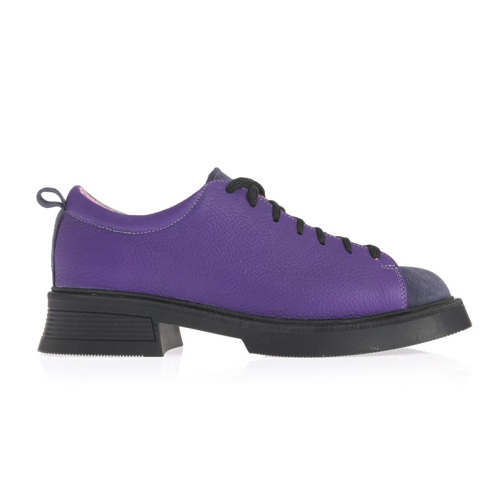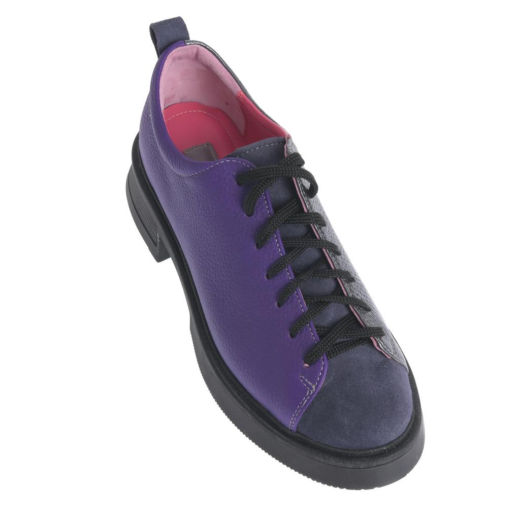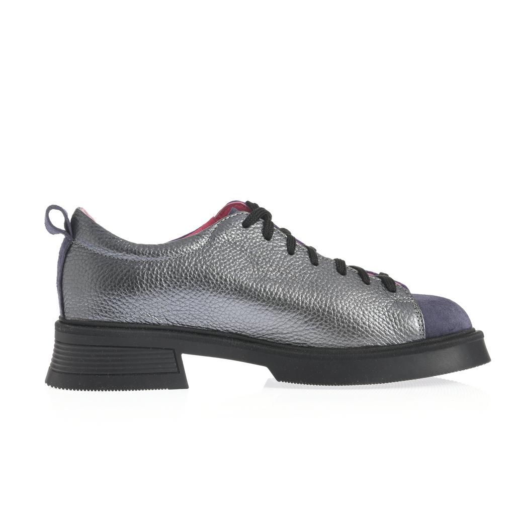 Pantofi casual din piele și piele întoarsă, prevăzuți cu închidere cu șireturi pentru ajustare sigură pe picior. Interiorul are căptușeală vizibilă, pentru un plus de confort pe parcursul zilei. Talpa este plată, cu o ușoară înălțare în zona din spate, iar vârful rotunjit susține un mers comod. Detaliile de design includ cusături vizibile pe laterale și în zona vârfului, plus un element în culoare contrastantă, potrivite pentru ținute de zi cu zi.