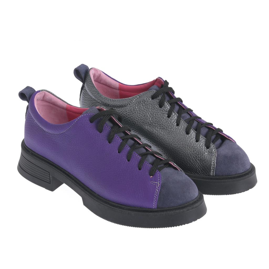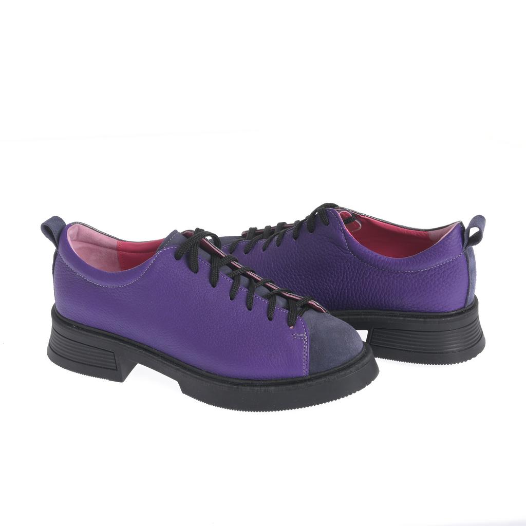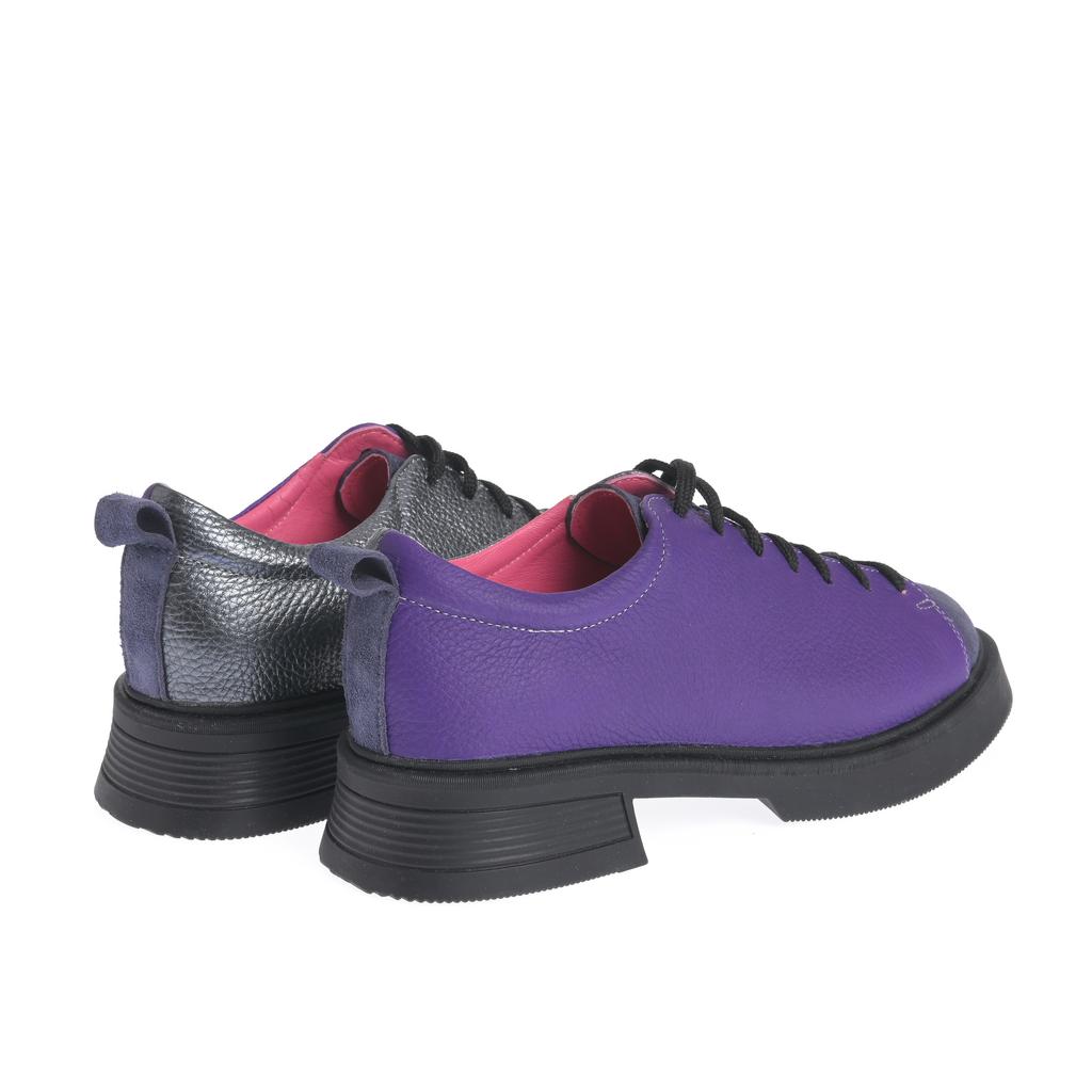 Pantofi casual din piele și piele întoarsă, prevăzuți cu închidere cu șireturi pentru ajustare sigură pe picior. Interiorul are căptușeală vizibilă, pentru un plus de confort pe parcursul zilei. Talpa este plată, cu o ușoară înălțare în zona din spate, iar vârful rotunjit susține un mers comod. Detaliile de design includ cusături vizibile pe laterale și în zona vârfului, plus un element în culoare contrastantă, potrivite pentru ținute de zi cu zi.