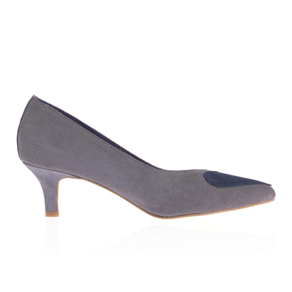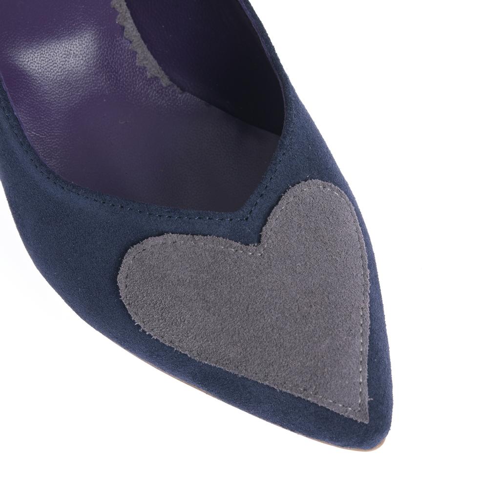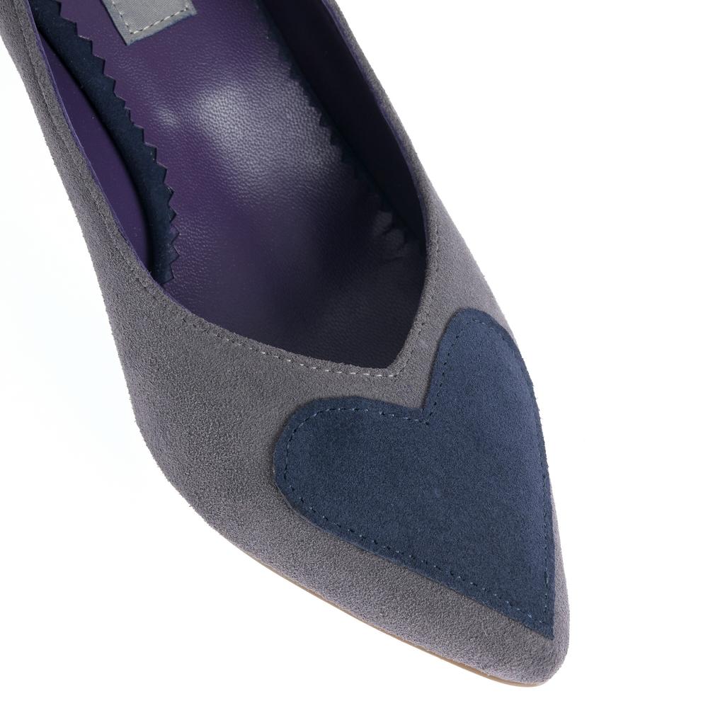 Modelul slip-on se încalță rapid și completează ușor ținutele de zi cu zi. Partea superioară din piele întoarsă și cusăturile curate oferă un aspect bine definit, iar vârful ascuțit alungește vizual piciorul. Tocul mic, subțire, păstrează o linie elegantă, potrivită pentru ieșiri în oraș și contexte casual. Aplicațiile în formă de inimă de pe vârf reprezintă un detaliu distinct.