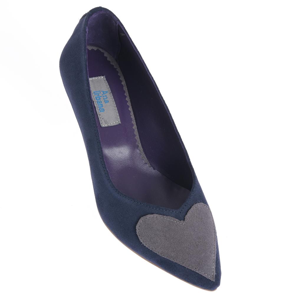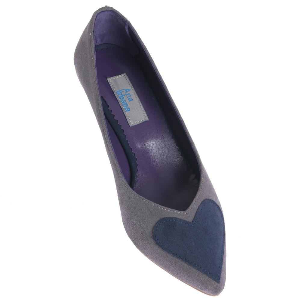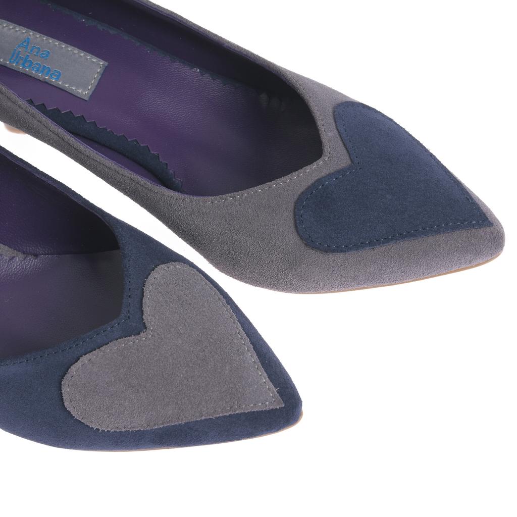 Modelul slip-on se încalță rapid și completează ușor ținutele de zi cu zi. Partea superioară din piele întoarsă și cusăturile curate oferă un aspect bine definit, iar vârful ascuțit alungește vizual piciorul. Tocul mic, subțire, păstrează o linie elegantă, potrivită pentru ieșiri în oraș și contexte casual. Aplicațiile în formă de inimă de pe vârf reprezintă un detaliu distinct.